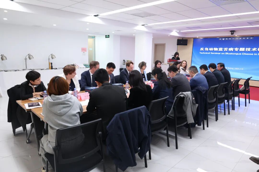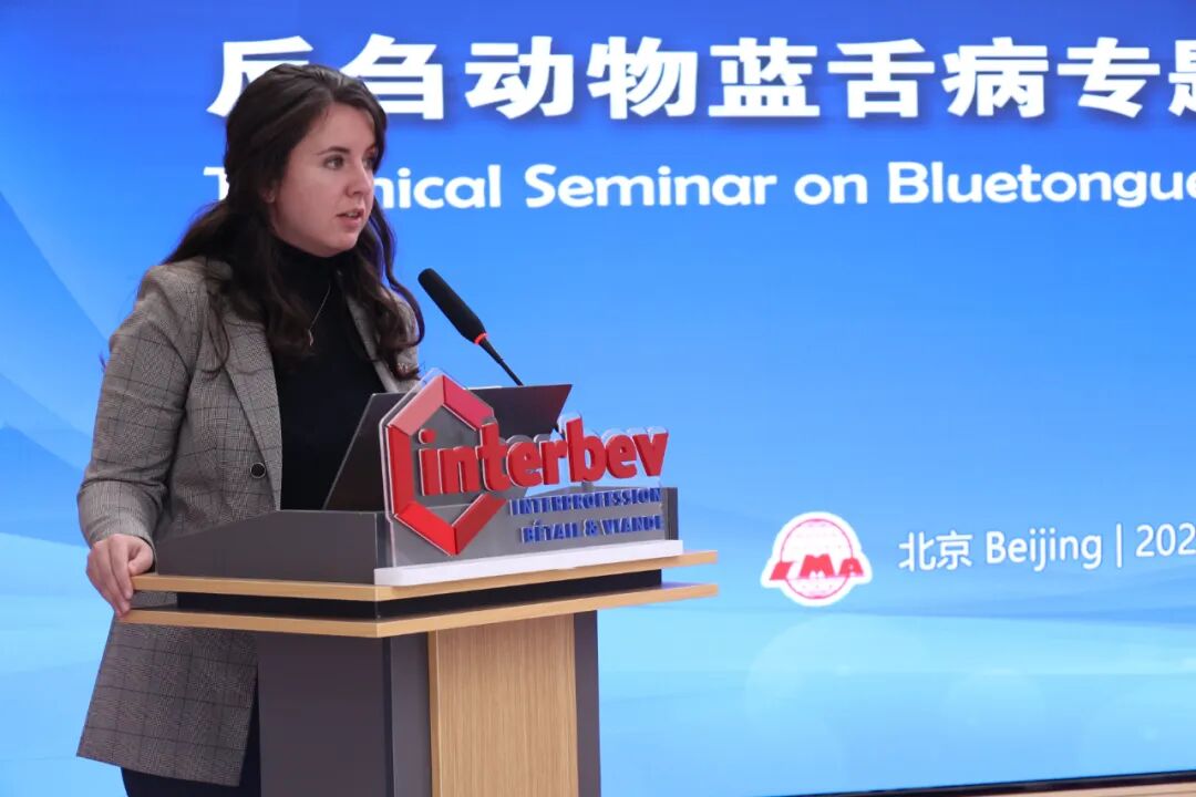 法国驻华大使馆农业参赞Caroline Robert介绍了法国农业领域蓝舌病防控情况,强调蓝舌病非人畜共患病,不会通过肉类产品传播,出口产品均经过严格检验检疫程序,并表示愿与中国在疫病防控领域建立基于科学数据与透明机制的合作模式,通过共享技术经验与安全标准,持续保障“从法国农场到中国餐桌”农产品质量。Vet Agro Sup法国食品、动物健康、农业及环境科学国家高等教育与研究学院总校长Mireille BOSSY,系统地介绍了蓝舌病的起源、传播、分布、种类、变异、防控以及疫苗注射情况,为蓝舌病防控体系的完善提供了科学依据。中方相关专家就中国进境动物产品检验检疫制度、中国蓝舌疫病的分布以及防控情况做了专题介绍。会议还进行了讨论环节,双方专家围绕蓝舌疫病的传播途径与载体、动物监测、疫病血清型与疫苗注射问题展开了积极的讨论。