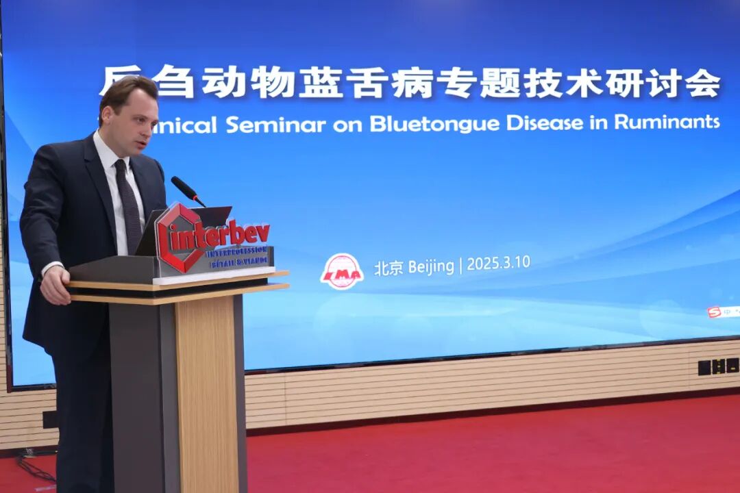 2025年3月10日,由中国肉类协会主办的反刍动物蓝舌病专题技术研讨会在北京召开。本次研讨会得到法国畜牧业协会、世界动物卫生组织(WOAH)和法国国立食品、兽医、农学和环境高等教育研究院(VetAgroSup)的大力支持。法国作为欧洲最早发现并应对蓝舌病的国家之一,积累了丰富的防控经验,而中国近年来通过行业大会与学术研讨,持续推进了反刍动物疫病防治技术创新,此次会议旨在深化两国在反刍动物疫病防控领域的技术交流与合作,推动双边贸易提质升级。中国肉类协会会长陈伟在致辞中表示,作为全国性肉类行业组织及世界肉类协会副主席单位,协会将聚焦肉类产业专业技术议题,通过举办国际性技术研讨会议,促进全球肉类贸易的可持续发展。法国畜牧及肉类协会外贸事务委员会主席毕家和在研讨会上强调了蓝舌病对国际贸易的影响,并介绍了法国肉类产业链的构成,他表示法国是欧洲最大的牛肉生产国,法国的肉类产业有严格的管控措施,并且建立了全链条溯源体系,通过为每头牲畜建立"身份护照"等举措,实现从养殖到加工的全流程可追溯监管,为保障食品安全和出口质量提供了技术支撑。